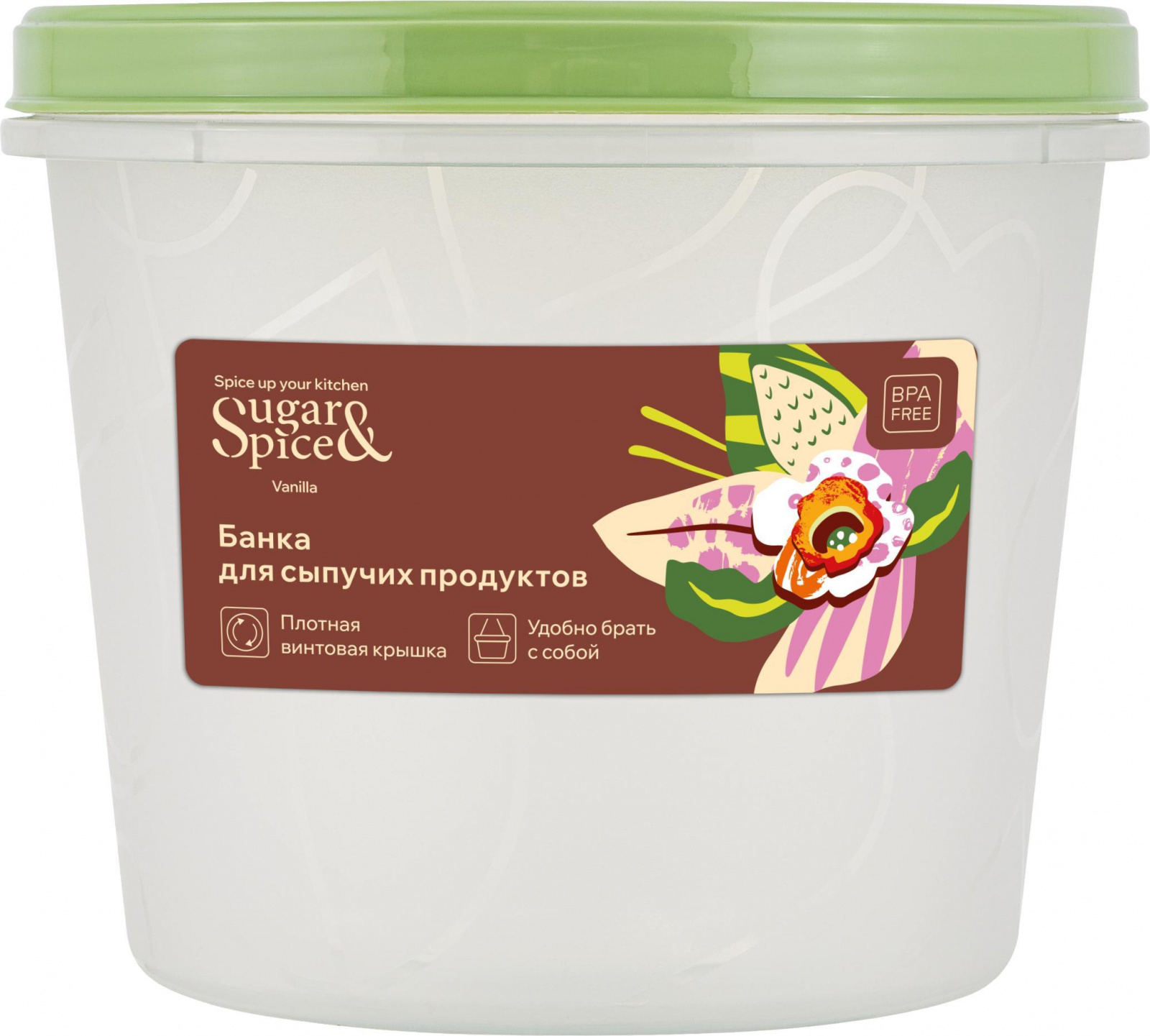 Банка для продуктов Sugar&Spice коллекция Vanilla, с завинчивающейся крышкой, 0,7л, круглый, 120х120х100 (SE1888)
