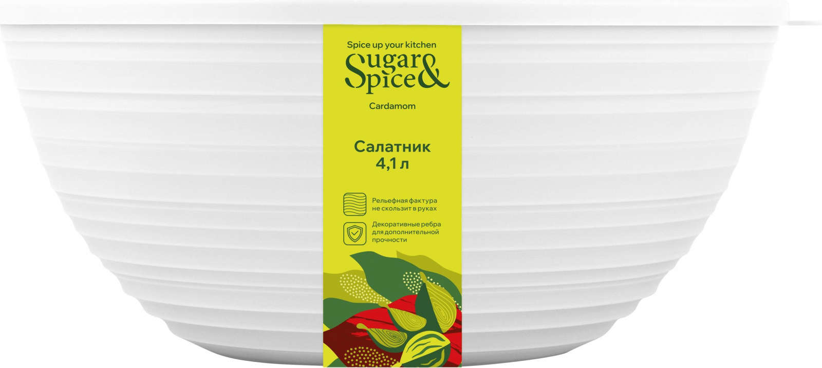 Салатник Sugar&Spice Кардамон с крышкой 4,1л прекрасно подходит как для приготовления, так и для подачи готовых блюд на стол. Тончайшие линии на корпусе создают ощущение оставленных следов от пальцев, теплоту от созданных своими руками изделий. Декоративная фактура на корпусе придает изделию дополнительную прочность. Благодаря природным оттенкам салатник впишется в интерьер любой кухни. Плотно прилегающая крышка сохраняет свежесть, вкус и аромат продуктов. Благодаря язычку на крышке салатник удобно открывать и закрывать. Салатник прост в использовании: его можно мыть в посудомоечной машине, хранить в холодильнике, разогревать в микроволновой печи. В коллекции представлены салатники объемов:1,2л; 2,3л; 4,1л. Размер: 27х25,3х11,3см.Температурный режим: от -5°С до +70°С.
